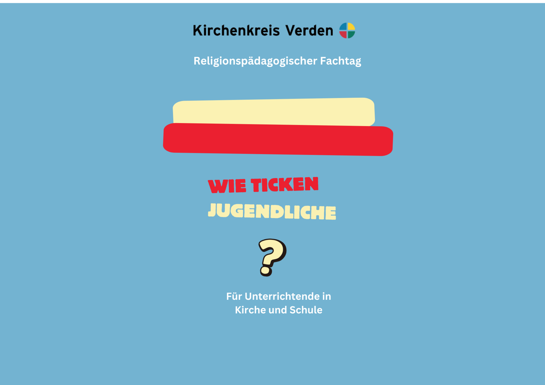 Am 13.05.2026 findet der diesjährige Religionspädagogische Fachtag zu dem Thema Wie ticken Jugendliche statt. Herzliche Einladung an alle Menschen, die Jugendliche in Kirche und/oder Schule unterrichten. Für die Teilnahme ist eine Anmeldung über folgenden Link erforderlich: